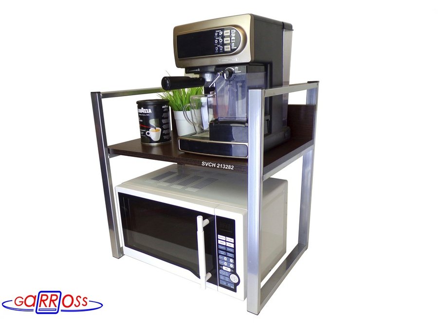 Универсальная подставка для бытовой техники (микроволновой печи, кофемашины, тостера, электрического чайника и др) позволяет эффективно использовать место на столе.