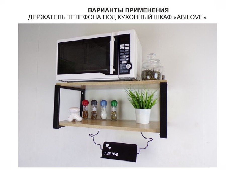 Держатель для телефона под кухонный шкаф - новое, современное и удобное решение. Закрепив держатель в удобном для месте под кухонным шкафчиком, Вы сможете наслаждаться просмотром фильмов и сериалов не отрываясь от процесса приготовления пищи и не перематывать видео обратно, если что-то просмотрели. Держатель легко крепится к нижней полке кухонного гарнитура или полки с помощью шурупов. Телефон или планшет будет устойчиво располагаться на держателе, что обеспечит сохранность от падения или попадания влаги.