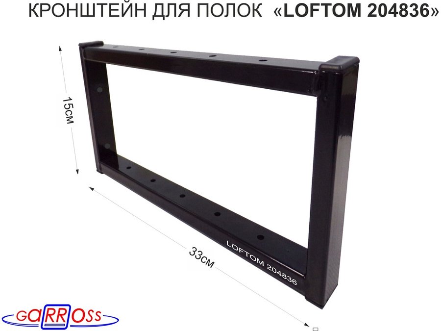 Кронштейн для полок, высота 36см, для столешниц, раковин, вылет 38см, 10 отв.,чёрный "LOFTOM 212148"
