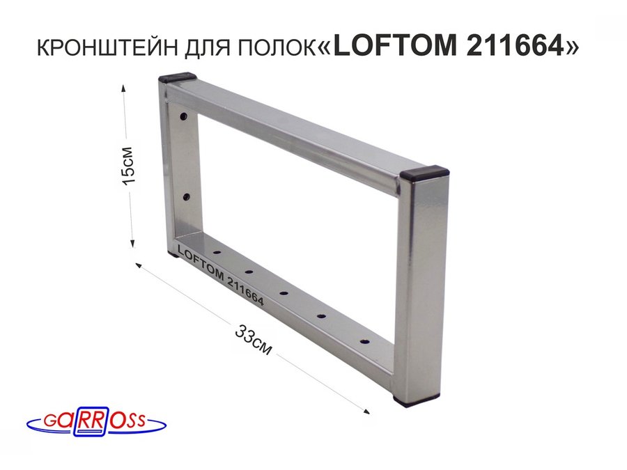 Кронштейн для полок, высота 25см, столешниц, раковин, вылет 33см, 7 отв., серебристый"LOFTOM 211412"