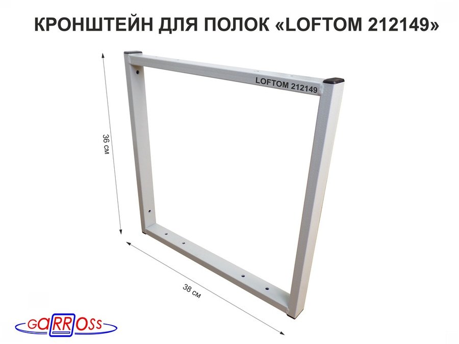 Кронштейн для полок, высота 36см, для столешниц, раковин, вылет 38см, 10 отв., серый "LOFTOM 212149"