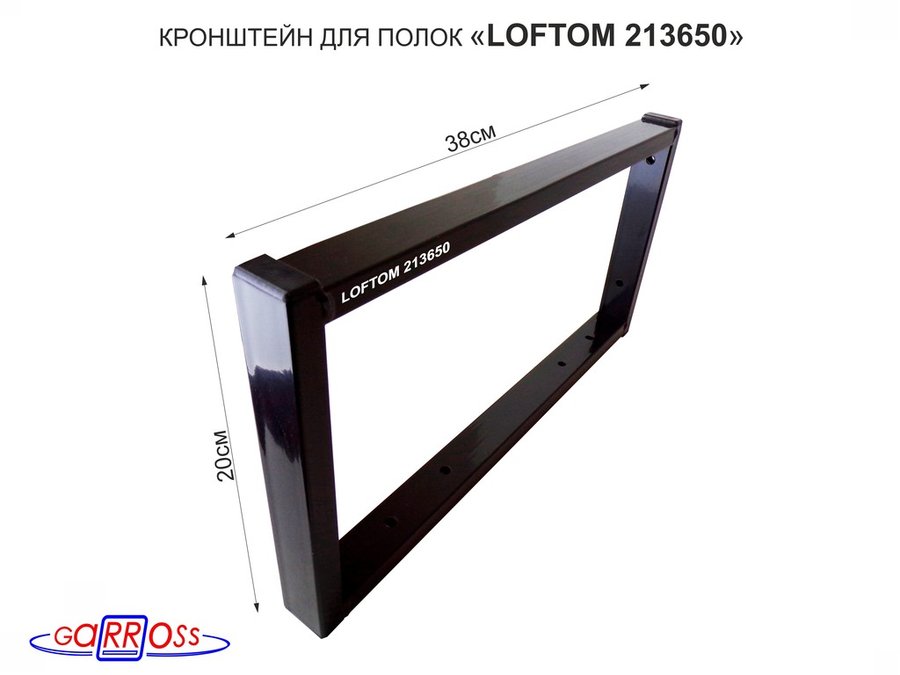 Кронштейн для полок, высота 20см, для столешниц, раковин, вылет 38см, 10отв., чёрный "LOFTOM 212150"
