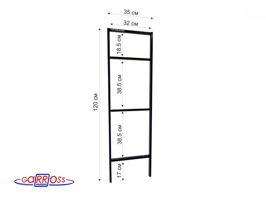 Каркас для стеллажа, на 3 полки шириной 30см, высота 120см, чёрный "LOFTOM-203023" глубина 35см