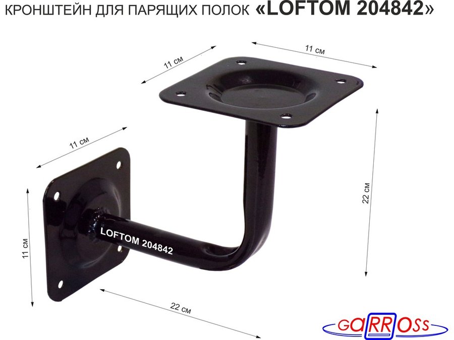 В корзину Купить в 1 клик Кронштейн для парящих полок, 22 х 22 см, к стене "LOFTOM 204842" чёрный, основания 11х11см