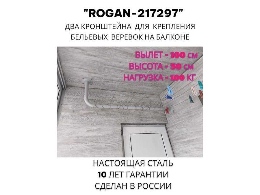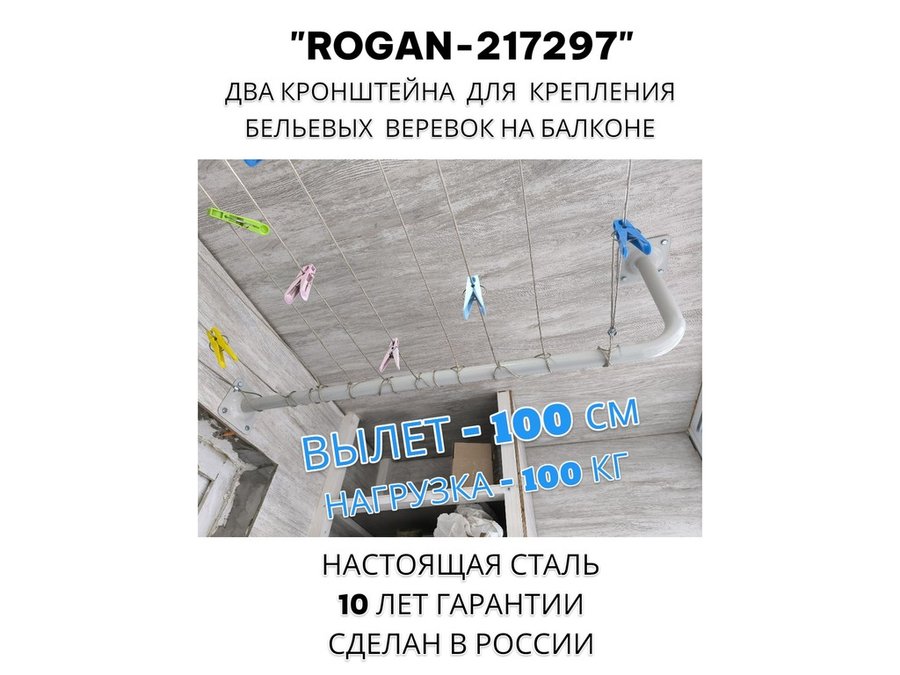 В корзину Купить в 1 клик Сушилка для белья под веревки, 2 кронштейна, длина 100см, вылет 30см "ROGAN-217297" серый, 32мм