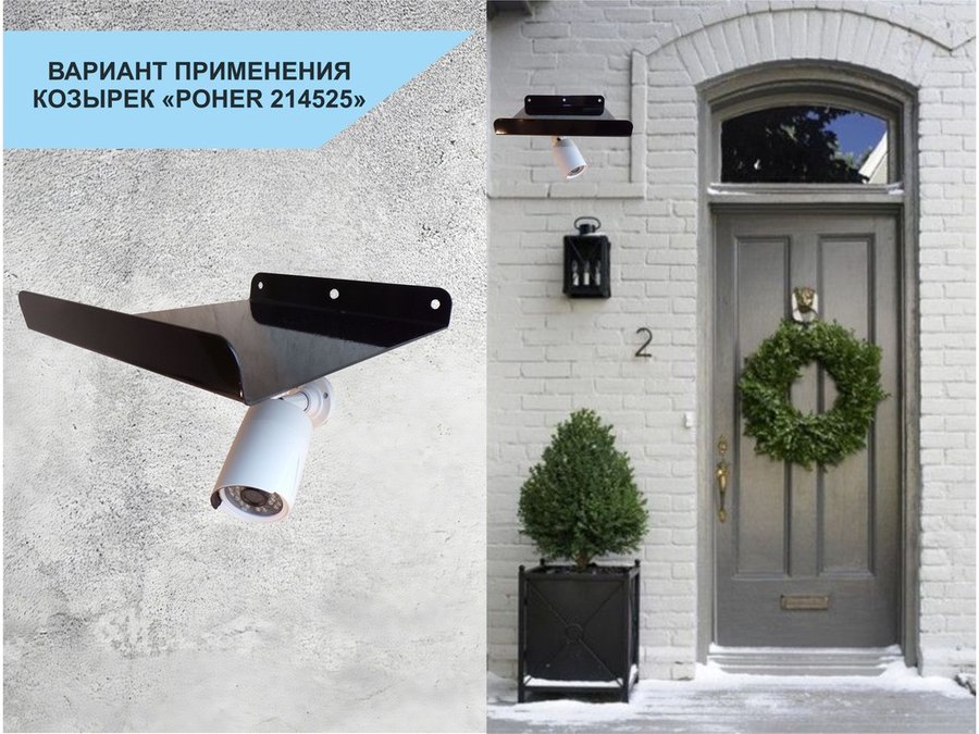 Козырёк с желобом для видеокамеры с желобком "POHER-214525" черный 24 х 24 см сталь 2мм
