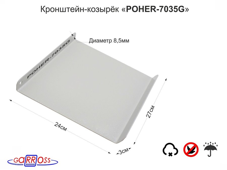 Кронштейн-козырёк "POHER-7035G-161278" для защиты камеры от дождя, солнца, серый, сталь 2мм, 24х27см