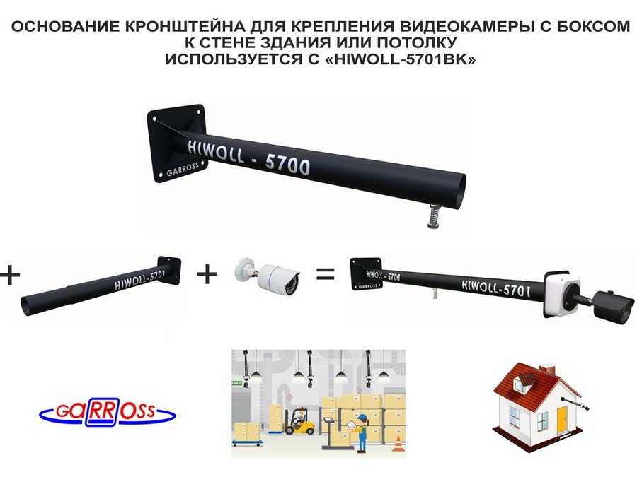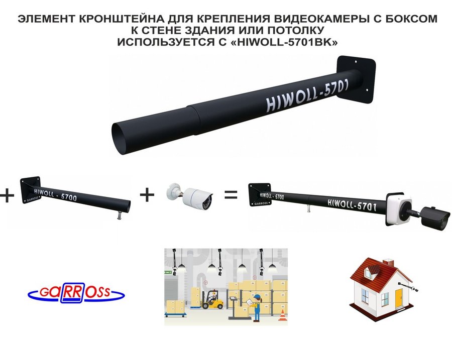 В корзину Купить в 1 клик Кронштейн "HIWOLL-5700BK" чёрное основание к стене для видеокамер и прожекторов, вылет 0,5метра