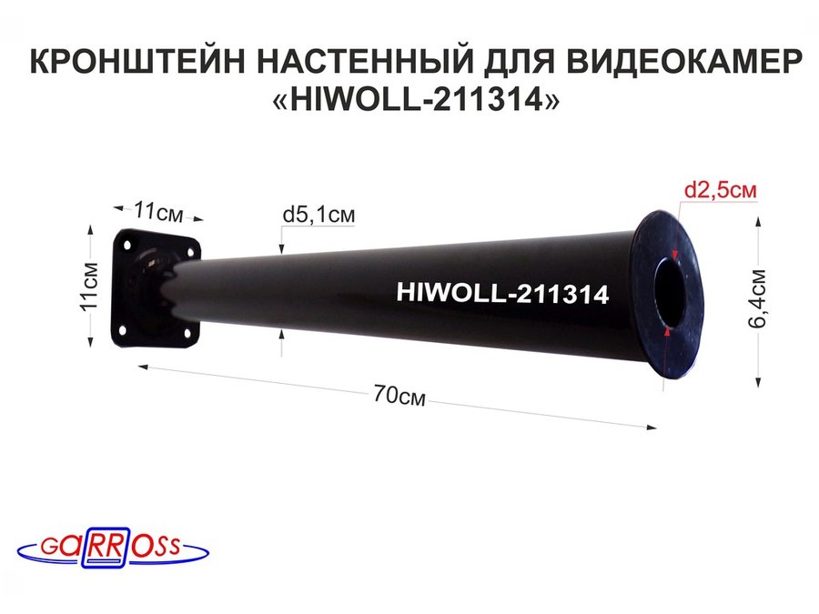 В корзину Купить в 1 клик Кронштейн 70 см "HIWOLL-211314" бокс настенный для видеокамеры, отв.25мм, диск 64мм, сталь, черный