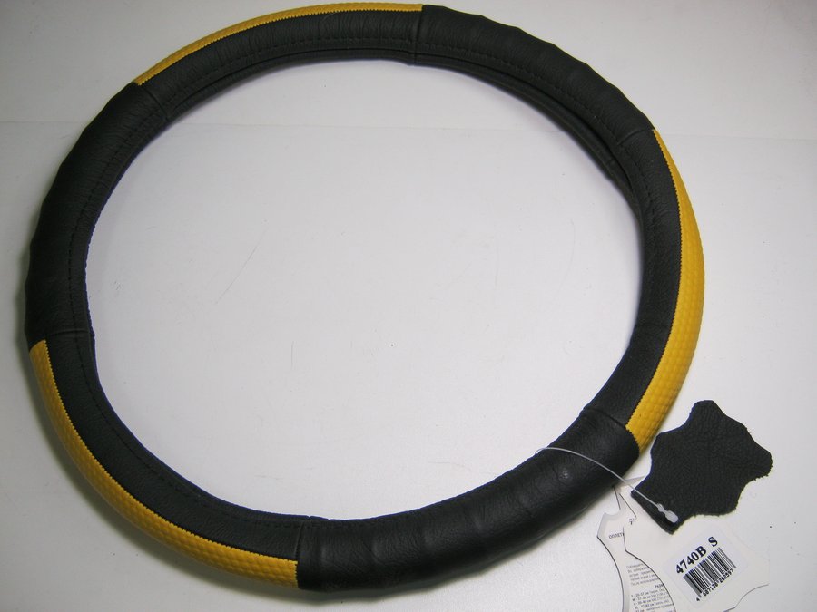В корзину Купить в 1 клик Оплетка на руль 36 см. S 4740B кожа черная+желтый пластик