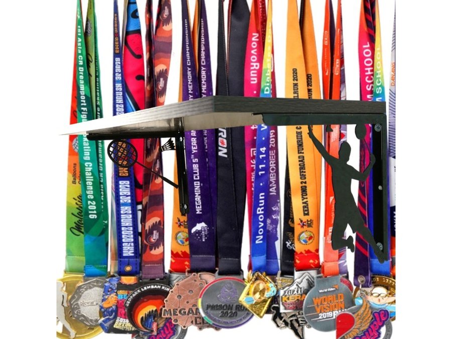 Полка спортивная "БАДМИНТОН АБИЛАВ-214677" для кубков, наград, грамот, медальница, венге, 30х60см
