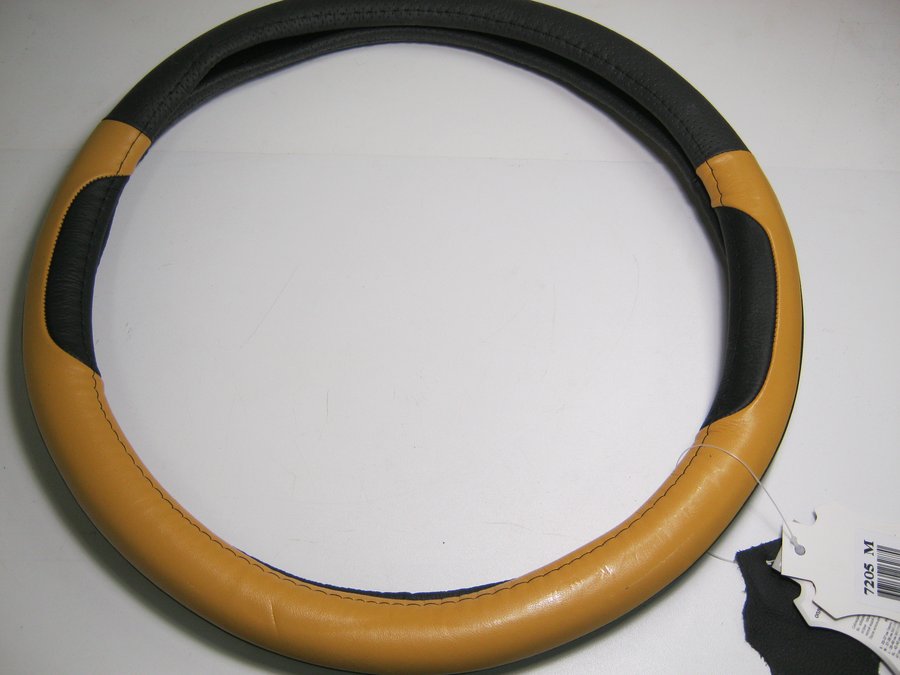 В корзину Купить в 1 клик Оплетка на руль 38 см. M 7205 кожа черная+желтая кожа "спорт" "гладкая"