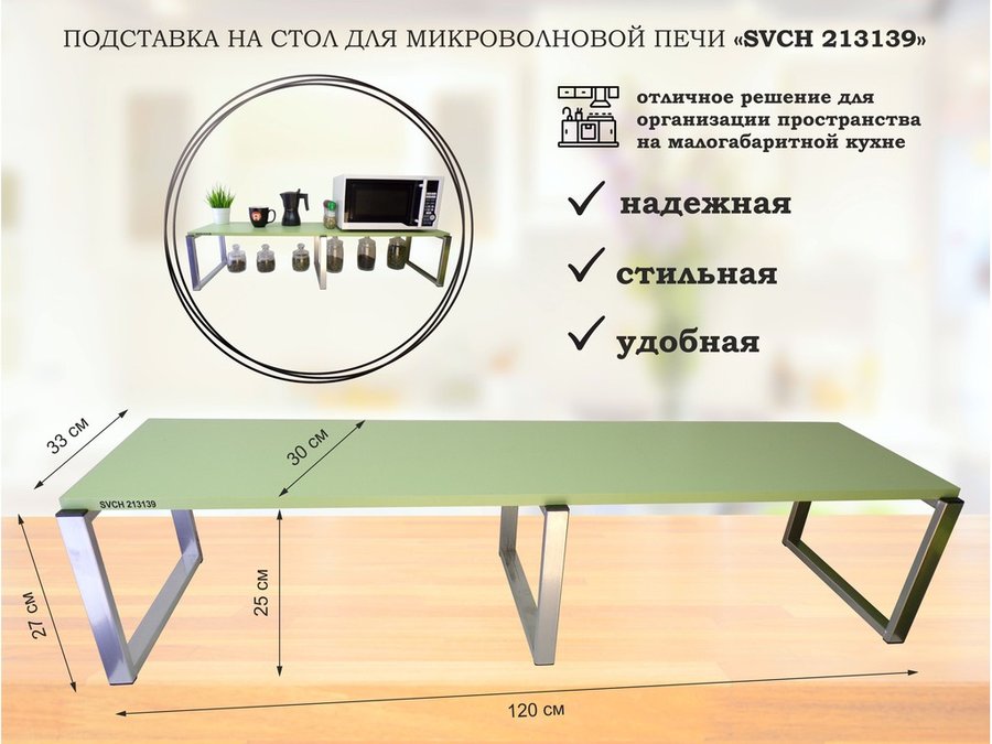 В корзину Купить в 1 клик Подставка, полка на стол для микроволновой печи, высота 17см серебр "SVCH 213121" 30х40см, салатовый