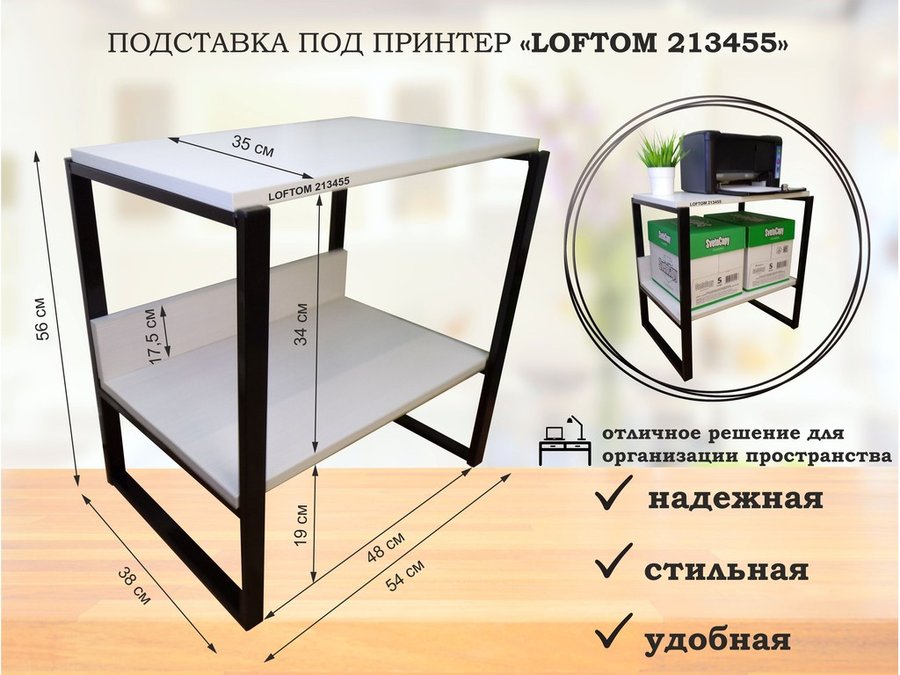 В корзину Купить в 1 клик Столик для ноутбука , подставка для удлинителей , высота 56см серый "LOFTOM 213445" 35х54см, сосна