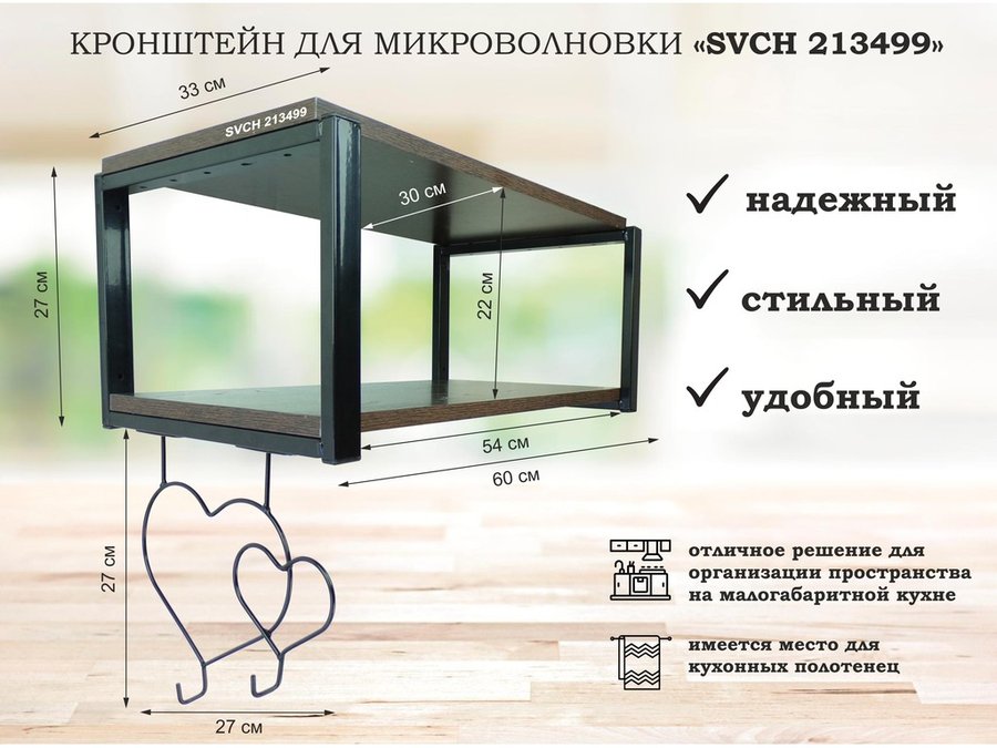 В корзину Купить в 1 клик Кронштейн для микроволновки, 27см черный "SVCH 213499" полка 60х30 см, венге, с двумя сердцами