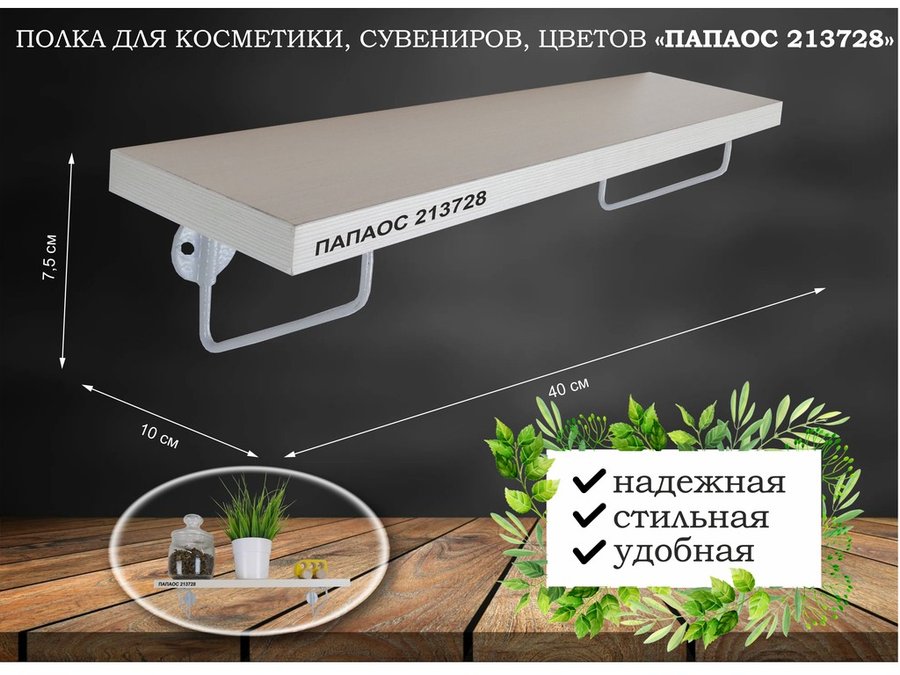 В корзину Купить в 1 клик Полка для цветов, игрушек,сувениров "КЕДРОПА-214016 гекон" размер 15х60х24 см, белый шагрень