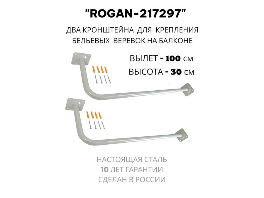 В корзину Купить в 1 клик Сушилка для белья под веревки, 2 кронштейна, длина 100см, вылет 30см "ROGAN-217297" серый, 32мм